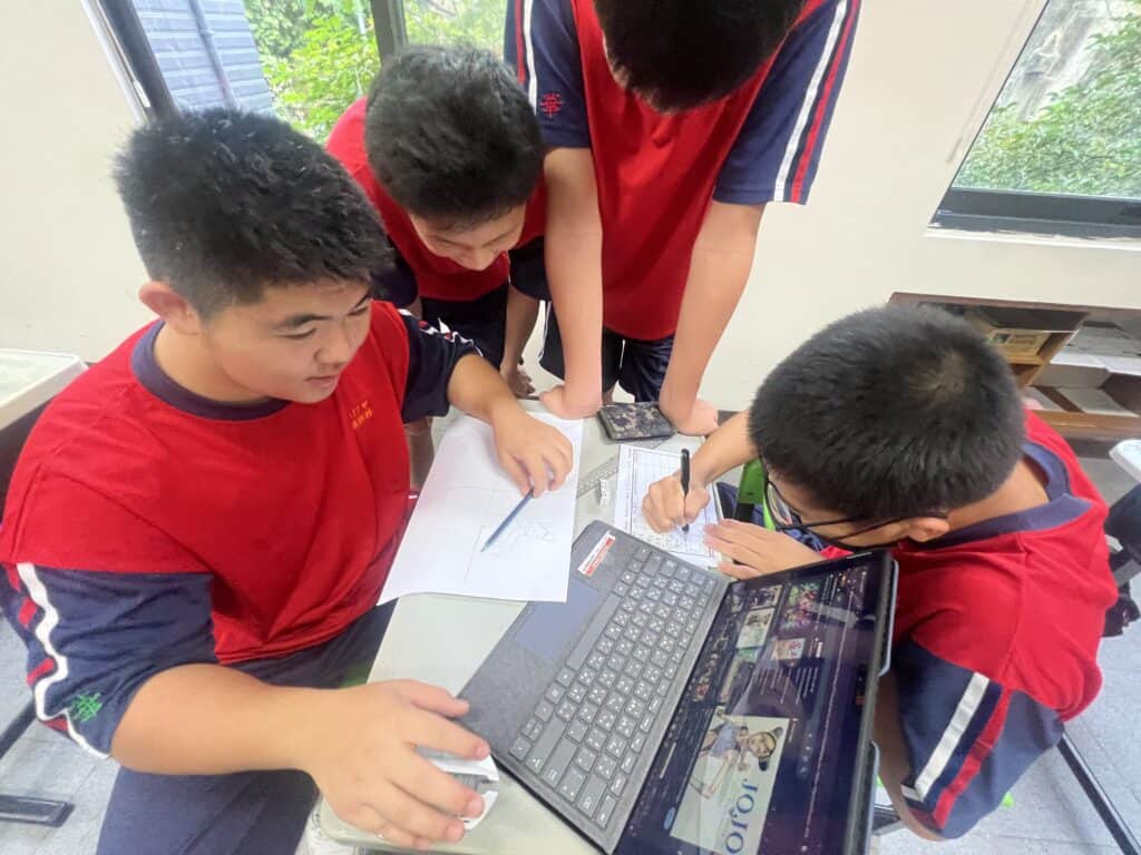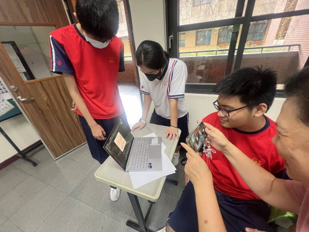 5.導師在一旁共同協助學生發想家庭教育四格漫畫的想法,也在一旁拍照留念