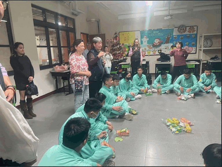 校長、董事長與師長也拜訪各班,陪伴學生點亮聖誕樹、分享班級蛋糕、許下心願,讓溫馨祝福遍布校園。
