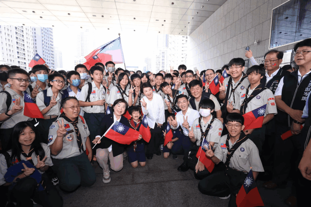 盧秀燕與參加國慶升旗的民眾開心合影。市府提供