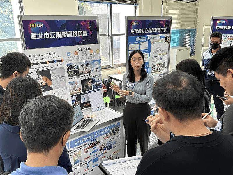 另外,更召集全臺數十名專家學者,入校給予現場教師專業的教學諮詢與支持。例如臺北市陽明高中於輔導教授朱蕙君教授的鼓勵下,設計自主學習的循環模組,讓學生在學習態度及認知上有所提升。陽明高中施芳斳老師表示,科技輔助自主學習循環模組,並將AI工具融入課程的實施中,很適合使用在高中的彈性課程。該校學生表示:「在這個專題實驗中,我們學到透過平板電腦自行搜索資料,並和組員們討論找到解決問題的方法。這提升了我們對事物的思考邏輯,也加強了小組內的關係。」、「自主學習可以讓我們從自己有興趣的方向發展,在做這個專題時,增加了我們對於科學的思考邏輯,還有閱讀能力。」「我在課程學習到時間管理能力、解決問題的能力、表達與溝通能力,在未來保持正確的預期和積極的學習態度,並懷有學習知識的興趣,充分利用各種資源和方法來幫助自己學習,面對不同困難時能蒐集資料並且評估,有系統化思考的能力去面對每一個大小挑戰。」