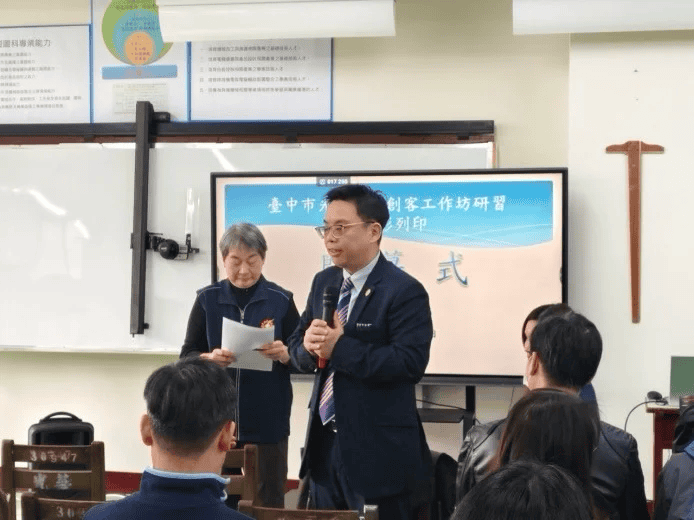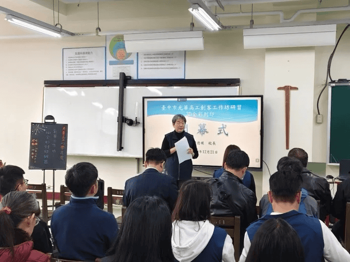 光華高工校長賈德琪主持3D全彩列印創意研習開幕式,勉勵學生積極參與實作學習,培養創新能力與實務技能。