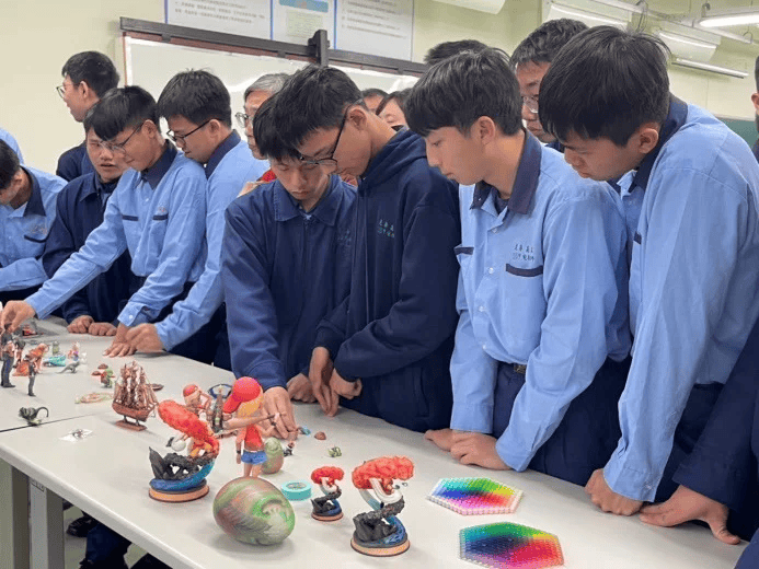 台中市光華高工為培養AI時代新人才,自2023年即領先推出智慧聯網AIoT課程,2024年再接再勵,更為新人才賦予3D列印專業,甫於12月購置MIMAKI 3D全彩列印機,包括兩台UV固化噴墨式3DUJ-2207及1台3DUJ-553,而於12月25日校級課程發展委員會中,在業界及學界專家學者共同認可之下,推出3D列印寒假營隊班及周末初級班,透過文創入門並上手,進而與AIoT同步結合產業領域,為培育體用合一新人才如虎添翼!