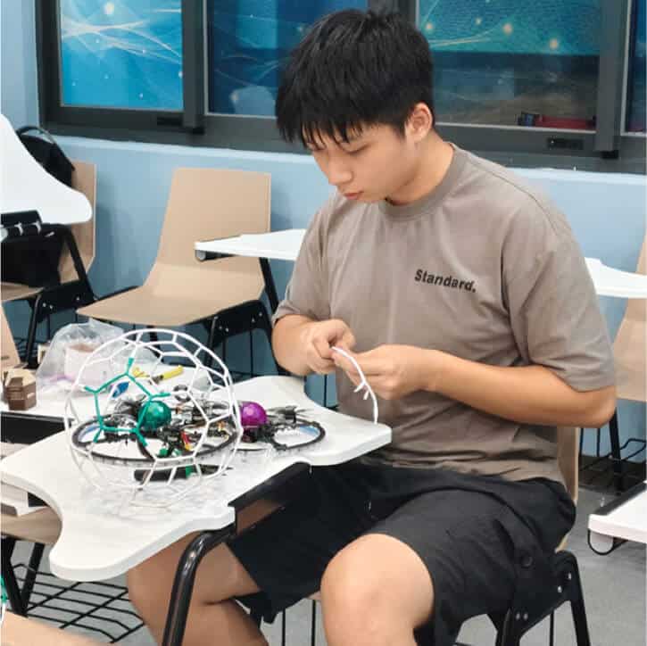 Step 1高一打好基礎 動手實作開始理解科技 課程從 AI 入門、感測器、資料蒐集到無人機與智慧種植,以「做中學」為核心,建立後續 AI × IoT 的基礎能力。 你在這個階段會掌握: 感測器安裝、資料蒐集與資料視覺化IoT 基本架構理解(感測 → 平台 → 應用)無人機基礎操控與飛行任務入門智慧農業基礎(環境感測、影像觀察)科技工具基礎(程式入門、AI 工具初體驗) 基礎奠基階段 高一共同課程(不分科系) 智慧種植實習(6學分) 感測器部署、環境監測、資料收集製作小型智慧農場模型各組完成「種植條件控制」期末證據 無人機監測實習(8學分) 飛行安全、基本操控、任務規劃FPV 基礎、影像資料蒐集完成組內「無人機巡檢」任務 AIoT 三年學習架構說明 智慧種植實習(6學分) 感測器部署、環境監測、資料收集製作小型智慧農場模型各組完成「種植條件控制」期末證據 無人機監測實習(8學分) 飛行安全、基本操控、任務規劃FPV 基礎、影像資料蒐集完成組內「無人機巡檢」任務 高一不是只是在「上課」是在為未來每一個專題做好準備 讓學生真的理解 科技不是魔法,是一條從數據整合、到動手實踐、再到系統整合的清晰路徑。 + 探索高二課程 + 返回 AIoT 課程