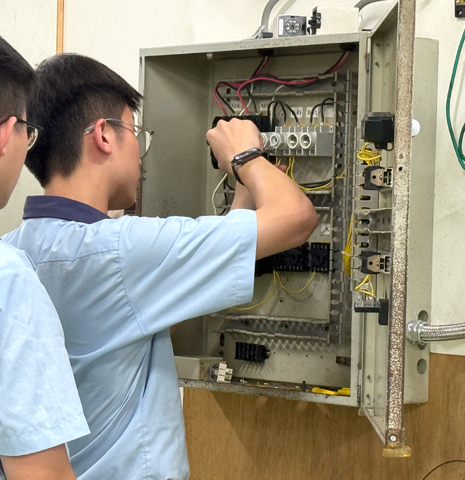 專業能力 /電機電子群培育自動控制、智慧製造與電子技術的專業基礎,邁向工程職涯。 掌握電機與電子就掌握未來科技的語言與能力在智慧科技快速發展的時代,電機電子群培養學生具備電力、控制、通訊、資訊與電子應用等多元能力,銜接高等教育與未來就業所需。課程重視實作與證照能力,涵蓋從室內配線、工業控制到通訊技術、單晶片應用等領域,致力於培養學生的創造力、問題解決能力及職場即戰力。 課程地圖 光華高工電機電子群課程強調理論與實作並重,從基礎的電路知識到實際操作技能,幫助學生扎穩專業根基,銜接多元升學與就業道路,打造科技時代不可或缺的技職人才。 電子科目 視聽電子、單晶片控制通訊電子、感測器應用音響技術、數位電路 資訊科目 電腦硬體裝修、網頁設計程式語言、微電腦控制數位電路設計、網路管理 電機科目 室內配線、工業配電PLC 控制、冷凍空調自動控制、電工機械 共同能力養成電機科、電子科、資訊科皆以「基礎電學、資訊應用、專題製作」為核心學習路徑,循序漸進強化專業技能: 基礎電學: 電腦應用、資訊概論。資訊應用: 數位電路、單晶片控制、PLC 程式設計。專題製作: 系統整合、職場實作。 + 下載完整課程地圖 學習剪影透過課堂側拍,捕捉學生操作設備與動手實驗的片刻,學習在過程中逐步累積。 科主任信箱校本部總機:04-2394-9009(來電請轉分機) 電機電子群黃釧泉 老師分機:2601Email:t22002@khvs.tc.edu.tw + 返回課程總覽